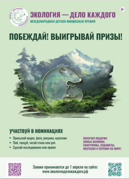 Стартовал прием заявок на VI Международную детскоюношескую премию «Экология – дело каждого». Прием заявок на шестой сезон продлится до 1 апреля 2026 года.